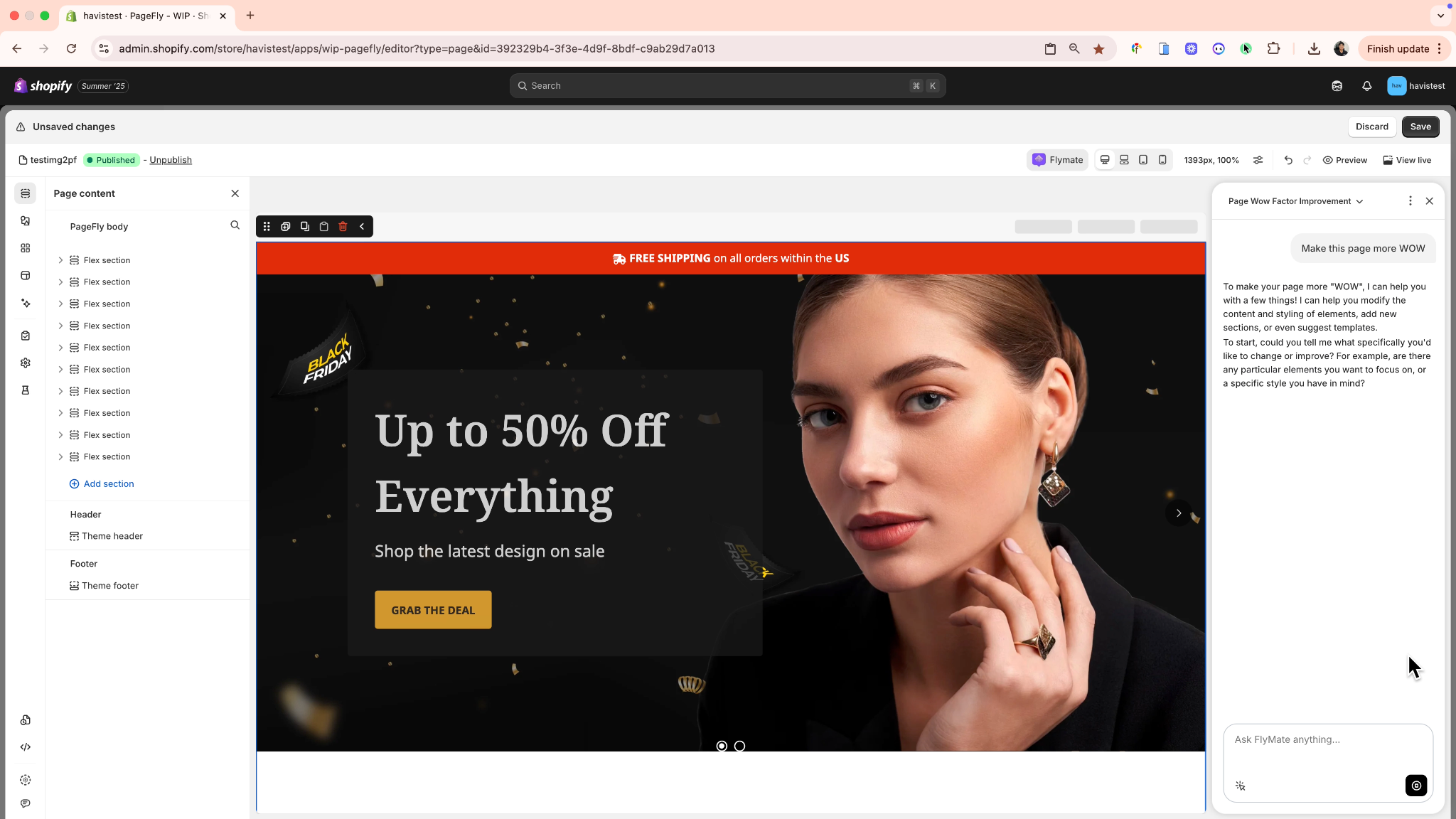 A: FlyMate works within the PageFly Editor environment. To modify published pages, you'll need to edit them in the PageFly Editor first.
